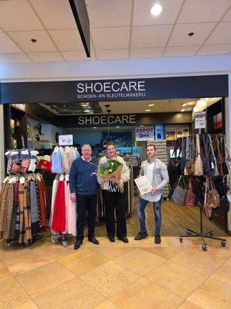 De laatste stop was in Amstelveen, in het prachtige winkelcentrum Stadshart. Hier is de derde finalist gevestigd namelijk Shoecare Amstelveen. De heer en mevrouw Verhave en hun zoon Stefan ontvingen ons wederom hartelijk, ook hier stond de koffie klaar en werden mooie verhalen gedeeld.
